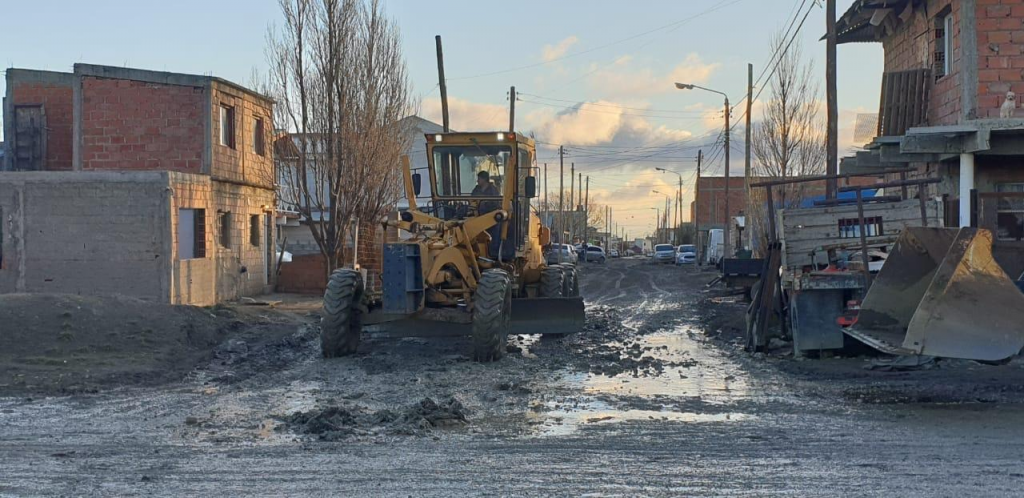 En la jornada de ayer el equipo de SER Santa Cruz cumplió una nueva jornada solidaria con empleo de maquinaria pesada, camiones cargadores y aporte de suelo; además de extraer el agua acumulada en varios tramos, para mejorar el estado de las calles en el barrio Marina, donde esta semana continuarán con las tareas de relleno y perfilado.